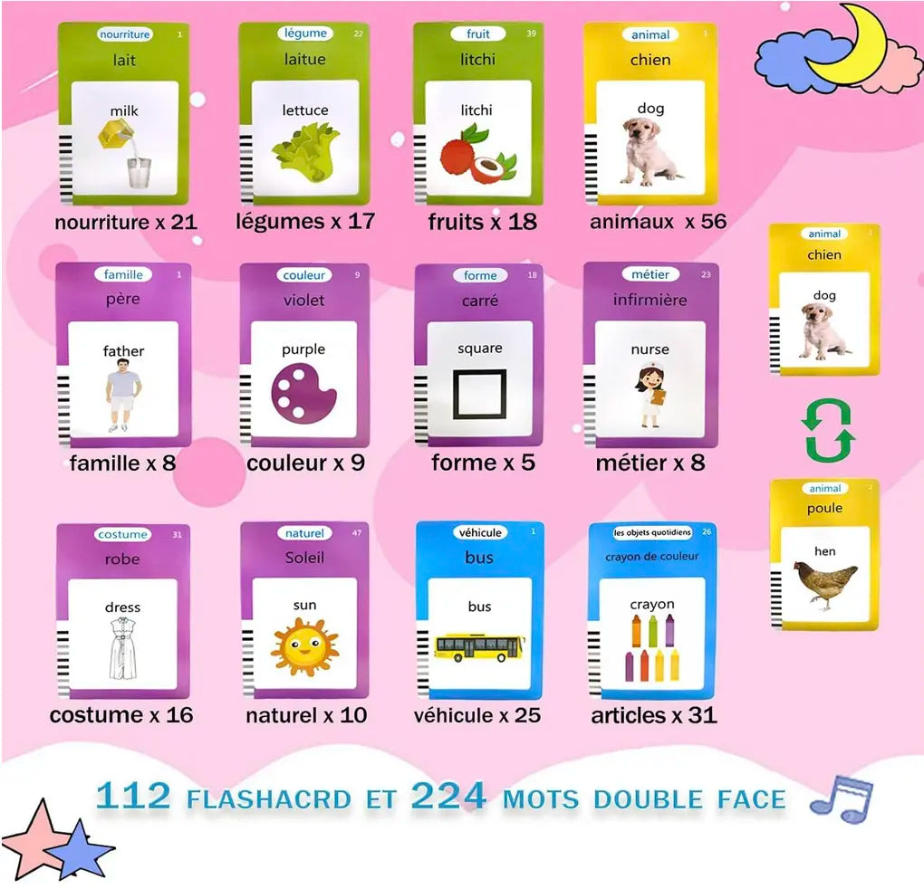Učinite učenje zanimljivijim i zabavnijim! Bambebe Talking Flash Cards set donosi čak 112 kartica i 224 reči iz različitih kategorija – životinje, brojevi, slova, vozila i još mnogo toga. Savršen izbor za ranu edukaciju dece uz igru i smeh.