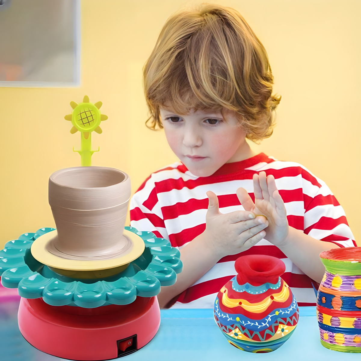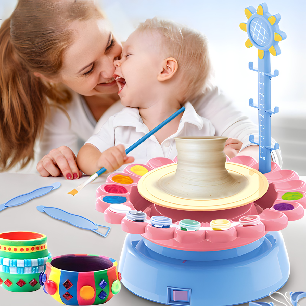 Usmeite decu na kvalitetne i primenjene hobije! Uz grnčarski set, mališani će razviti svoje kreativne i intelektualne sposobnosti, zavoleće umetnost i poželeće da se usavršavaju! U setu je sav potreban pribor za obradu gline – od točkića, pa sve do keceljice! Namenjeno je čak i početnicima koji će uz detaljna uputstva vrlo brzo ovladati veštinom vajanja! Skrenuće im pažnju sa računara, interneta, TV-a i ostalih uticaja koji donose više štete nego koristi!