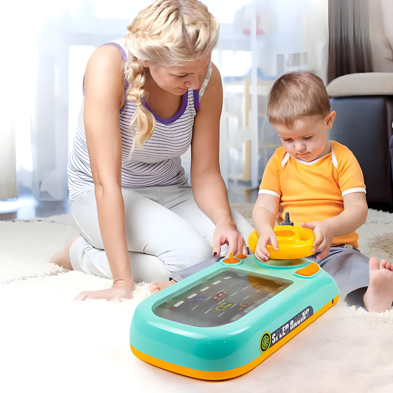 Naša dečija trkačka igračka na volanu je savršena igračka koja dodaje uzbuđenje i avanturu svakoj dečijoj igri. Ova igračka je specijalno dizajnirana da pruži deci realistično iskustvo vožnje dok razvijaju njihove motoričke veštine i kreativnost.