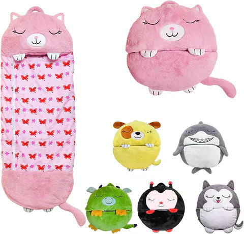 Za nekoliko trenutaka pretvara se iz zabavnog i slatkog jastuka u prenosnu vreću za spavanje. Potrebno je samo otkačite par dugmića i spremna je za spavanje.🥰