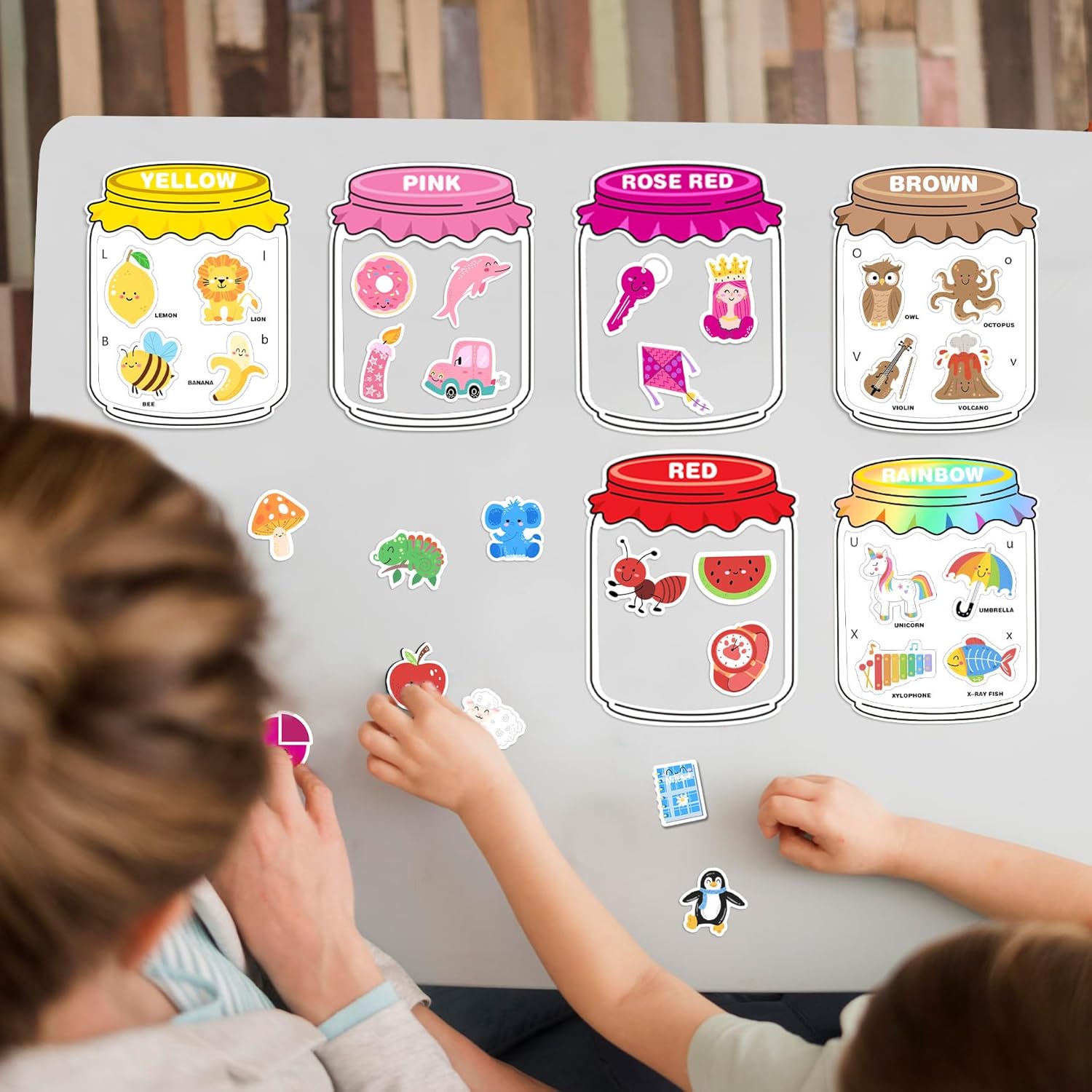 🌈 Razvijanje Veština Kroz Igru: Set sadrži 10 okvira u obliku tegli za slatkiše i 50 šarenih magneta sa motivima igračaka, hrane, školskog pribora, životinja i još mnogo toga. Deca mogu povezivati magnete sa odgovarajućim teglama iste boje, čime razvijaju sposobnost prepoznavanja boja i logičko razmišljanje. 🧠