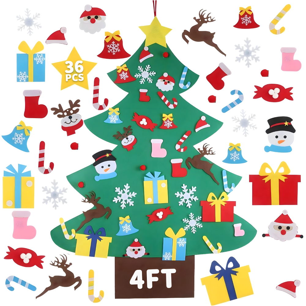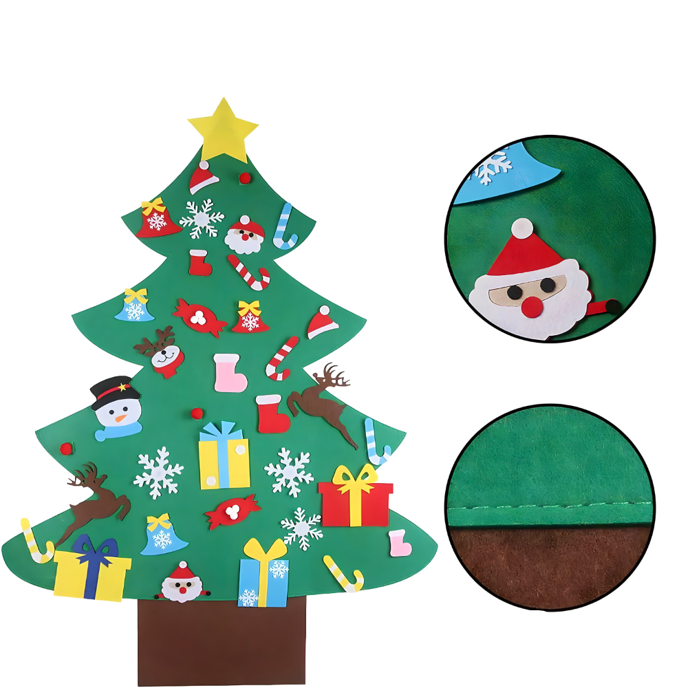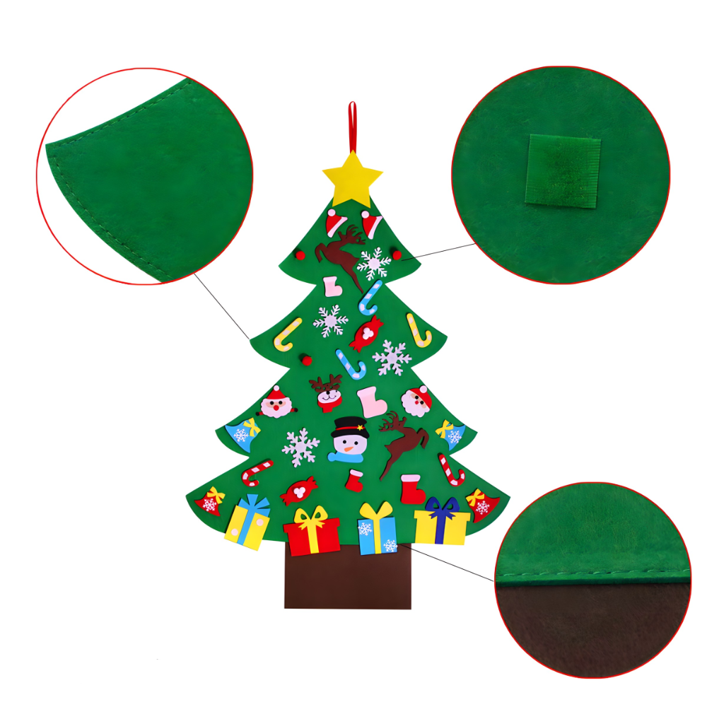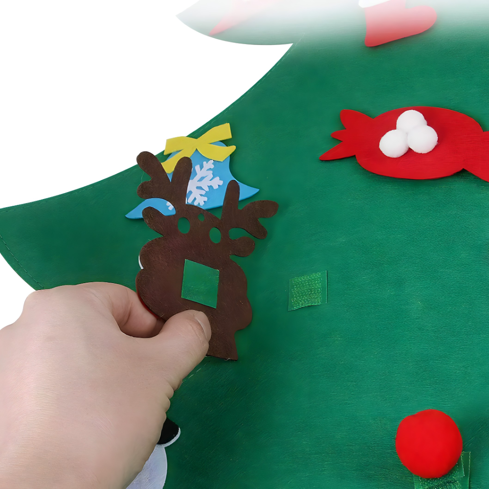 Ukrašavanje je jednostavno i pruža sate zabave! Uz jelku dolazi 26 ukrasa (Deda Mraz, Sneško Belić, zvončići, pokloni, pahuljice i još mnogo toga) izrađenih od istog filca. Ukrasni elementi se pričvršćuju pomoću čičak trake, što omogućava deci da ih lako premeštaju, menjaju raspored i svakog dana kreiraju novu prazničnu atmosferu.