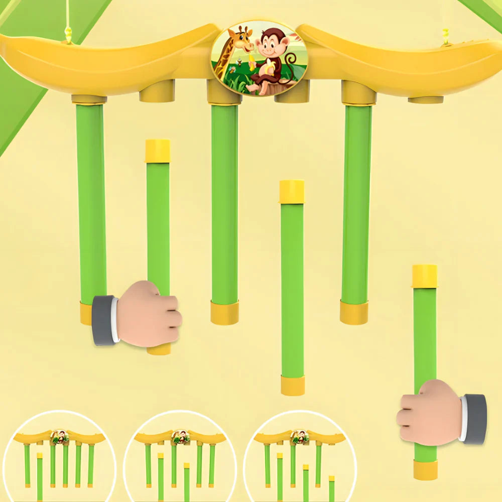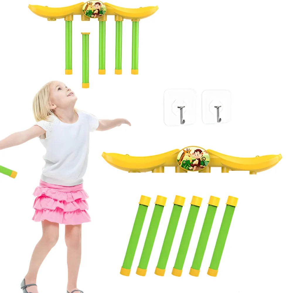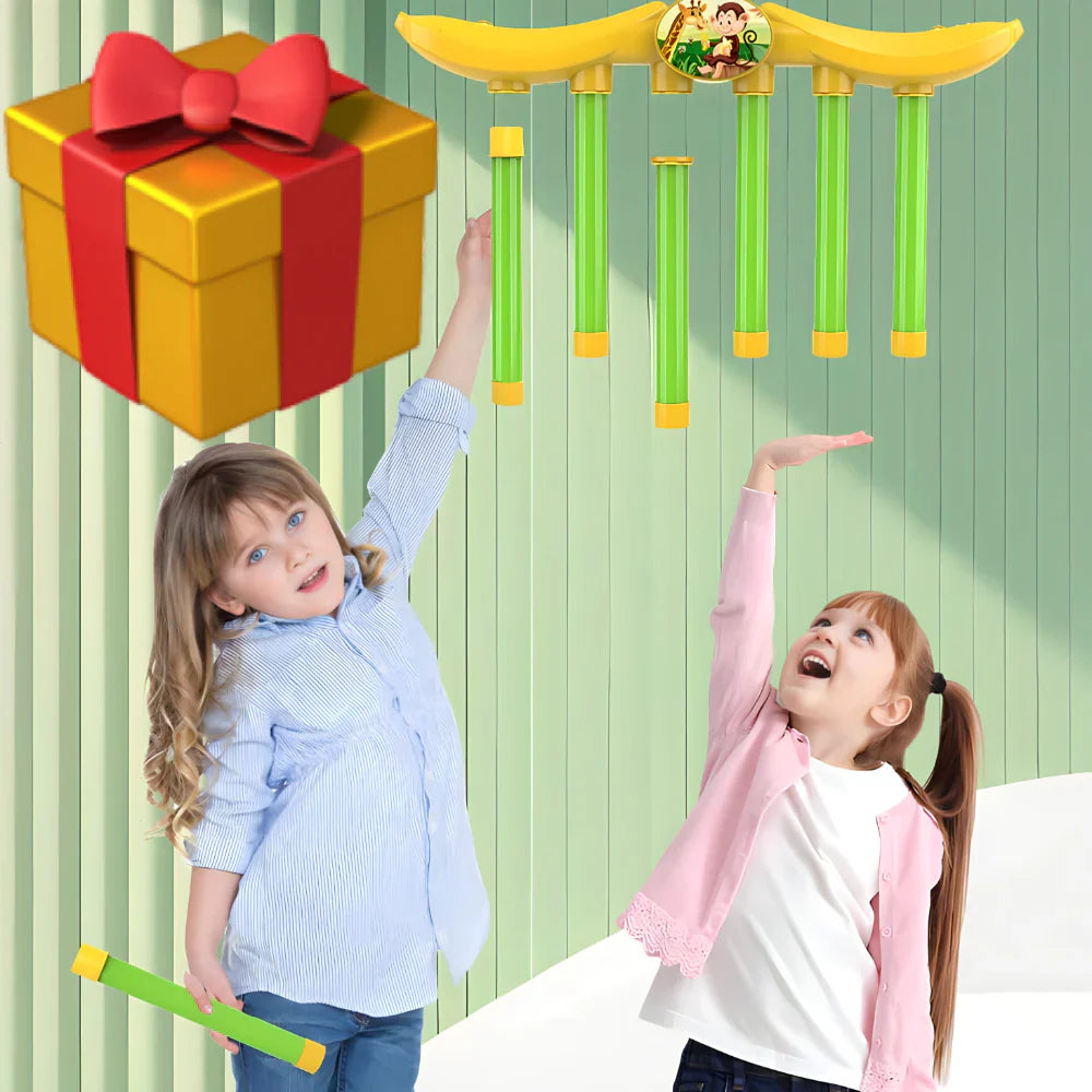 Štapići se postave na osnovu i nasumično padaju, a zadatak je da se uhvate pre nego što dotaknu pod. Deluje lako, ali deca vežbaju reflekse i koncentraciju na potpuno prirodan način.