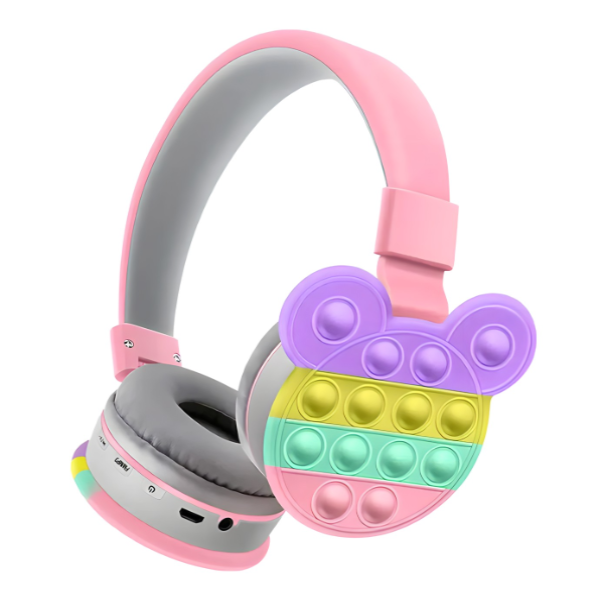 Dizajnirane sa pažnjom, ove slušalice su udobne i bezbedne za dečje uši, a šareni Pop It elementi dodaju dodatnu dimenziju igre. Materijali od kojih su izrađene su sigurni i izdržljivi, a prilagodljiva veličina osigurava savršeno pristajanje.